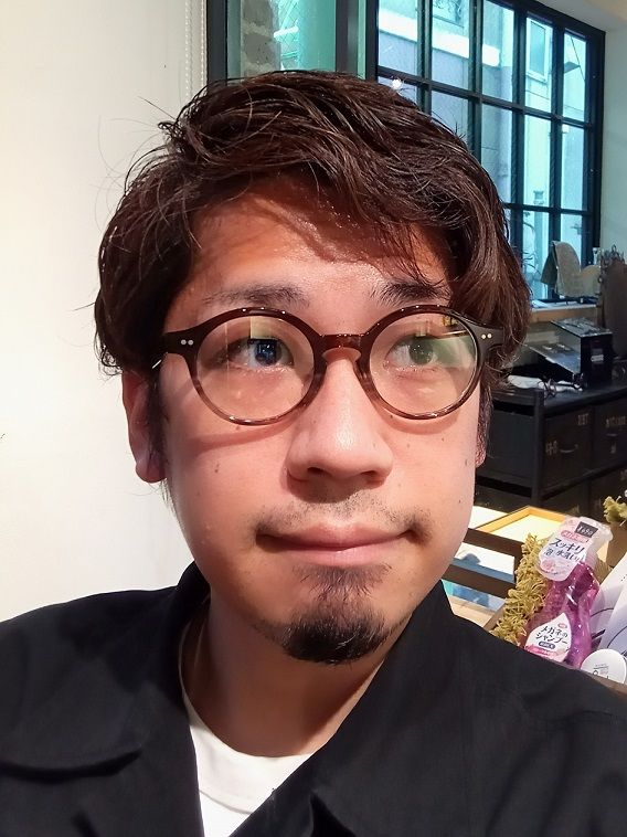 ラウンドタイプで、かつフチが太いとかなり個性が強いメガネになるんですが、これもまたブラウンのツートーンカラーになっているので、程よく抜け感が出て、個性楽しみつつ違和感なく顔に馴染みます。
